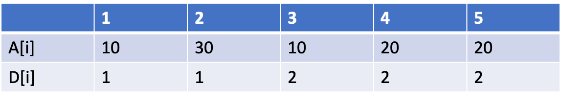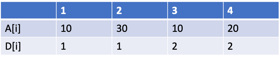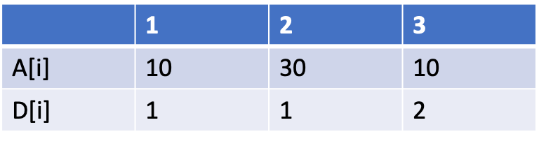 먼저 A수열의 A[1], A[2], A[3]를 먼저 보자. A[2]보다 A[3]가 작기때문에 D[2]값에 +1을 해준다.